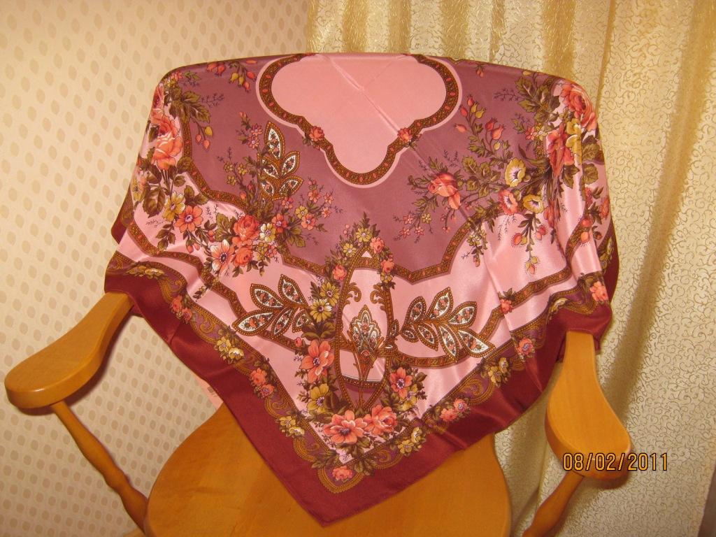 Здравствуйте и всех с праздником ^% ^% ^% ! Покажу сейчас свое приобретение к 8 марта (Кликните, чтобы почитать оффтопик).... Это крепдешиновый платочек "Пробуждение" любимой всеми художницы К.С.Зиновьевой. Решили мы погулять с Мариной и Настенькой на Масленице, зашли в магазинчик, где есть малюсенький уголочек с ППП,...и увидели эту прелесть. В нашем архиве квадратиком этот платочек показывала Алла, я покажу уголочки. А в Примерочной покажу его накинутым на шубу - в соседнем магазинчике мы с Мариной выбирали шляпки...тоже к 8 марта :D