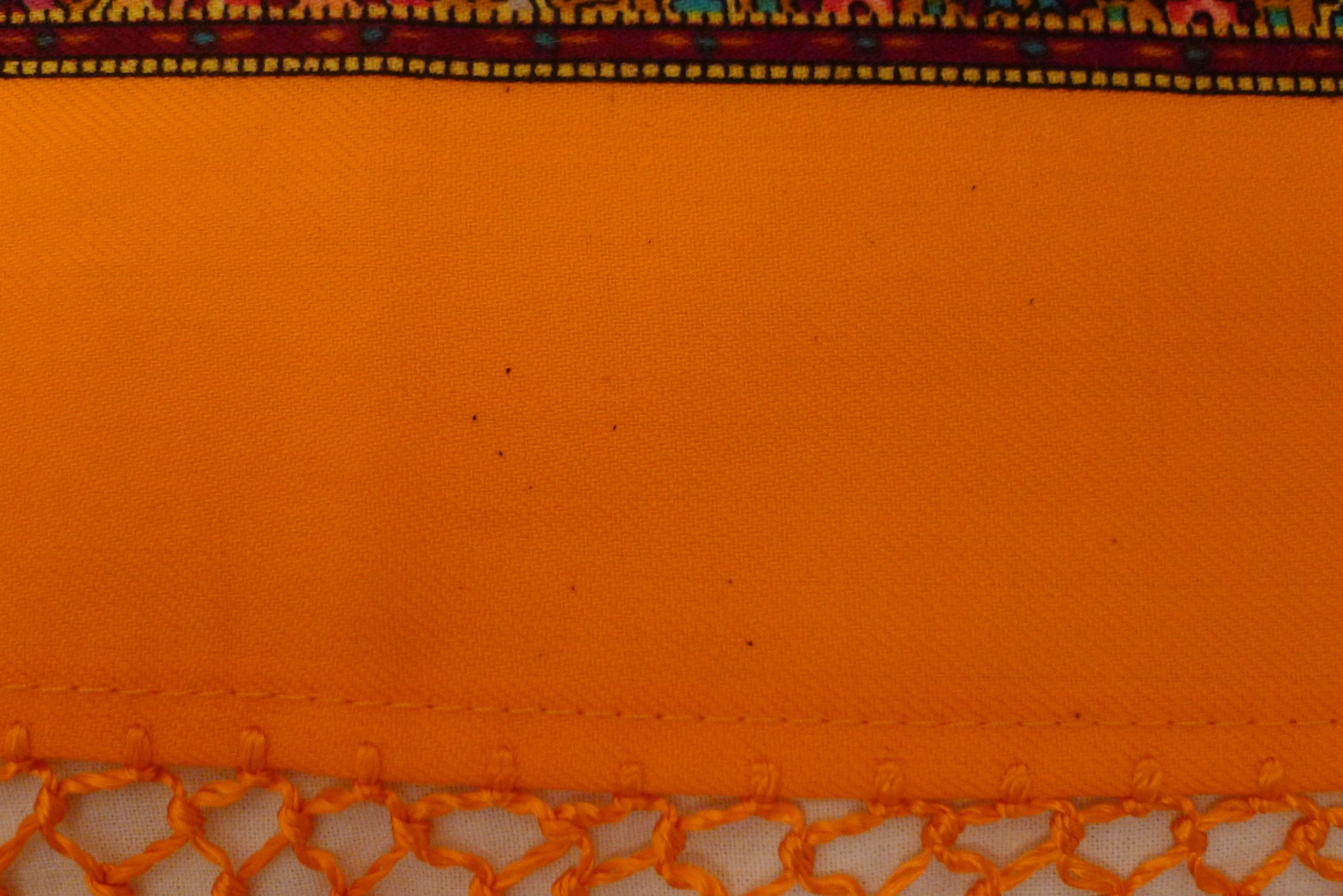 Бахрома на Азе-2 тоже нормальная, по цвету идеальное совпадение с каймой, как и у Волшебницы. На фото, где они обе на диване, хорошо видно: у Азы бахрома тыквенная, у Волшебницы - ярко-оранжевая.