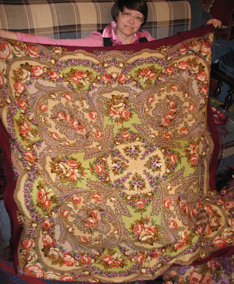 Итак, двухмесячная эпопея почти (в дороге ещё одна посылка, с Птицей) завершилась счастливым концом. Простояв полчаса на почте (последний день отправки налоговых деклараций, однако!), я вышла оттуда окрылённая, неся 3 заветные посылочки. Дома ожидал больной ангиной муж, который жалобно постанывал и даже не мог выразить свои чувства (так болело горло). Так что, высказав ему всё возможное сочувствие, я пробралась с заветными свёрточками в комнату и... увидела входящего за мной мужа с фотоаппаратом в руках. Так что дальнейшее запечатлено для истории. В самой маленькой посылочке оказались два крепдешиновых платочка. Интересно, почему их отложили отдельно? Второй пакетик был пообъемнее. Кажется, в нём Цветущий сад...