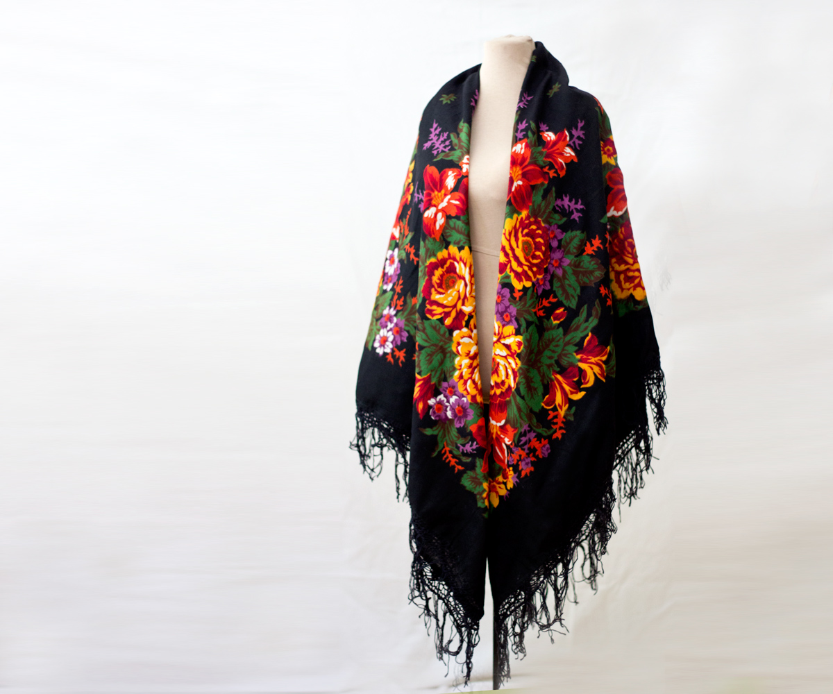 Шаль БУКЕТ С ГЕРАНЬЮ (фрагмент). Фотофильмпечать, 1976 год.