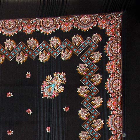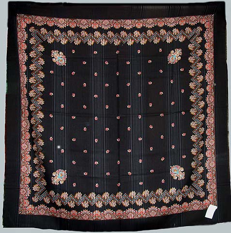 Но вот эти две шали на platki.ru так и не обнаружила - 956-14 и 1063-18. Тоже, насколько я понимаю, восстановленные. Сразу извиняюсь за качество снимков: не было возможности поставить нормально свет, поэтому пришлось фотографировать со вспышкой.