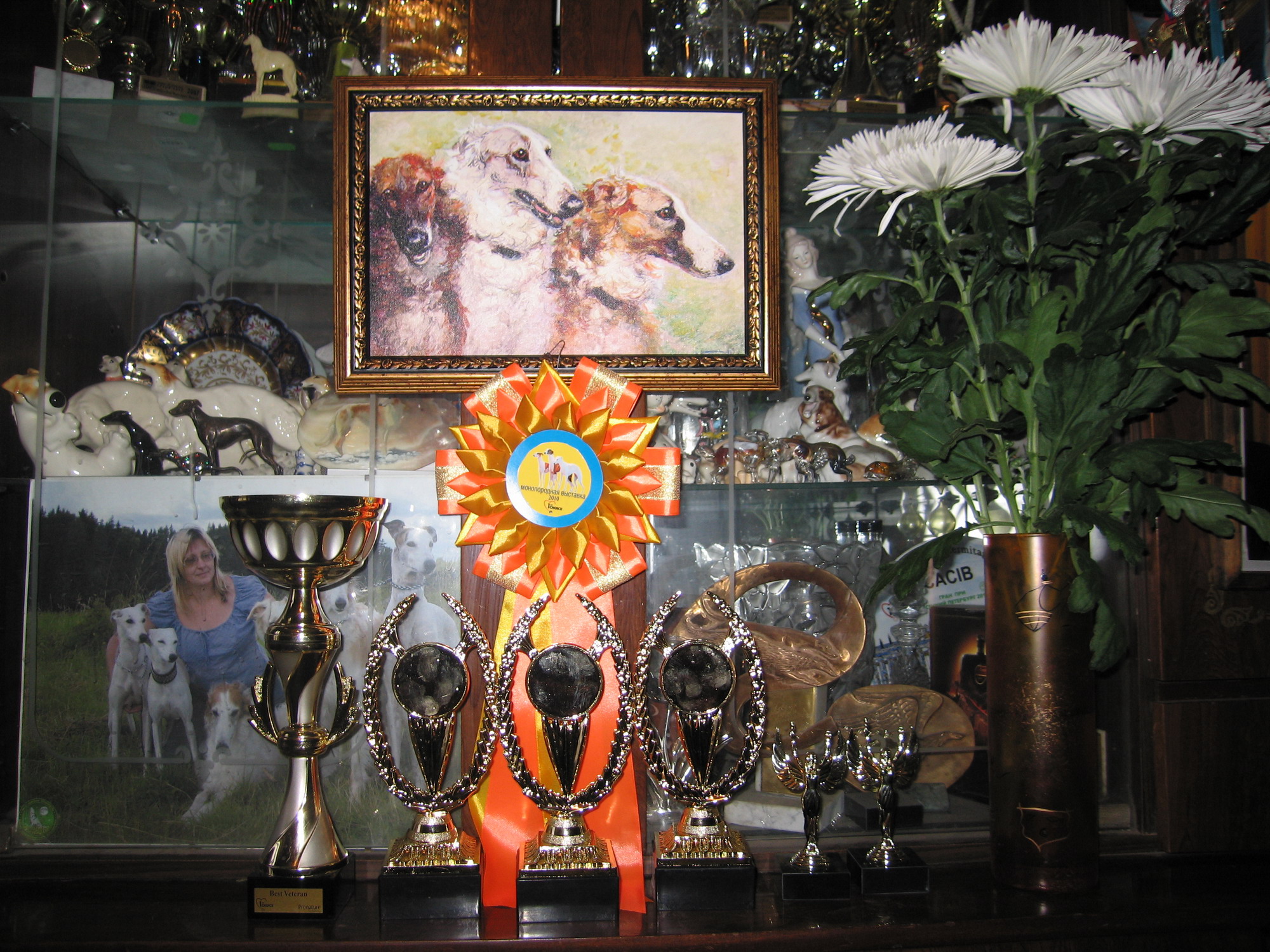 Я постараюсь показать. Надо фотографировать. В моей коллекции не только фарфор, но и бронза, и кость, и роспись на перламутре, роспись на фарфоре, эмали, много картин...Так исторически сложилось, что чуть ли не половина моих друзей-борзятников, творческие личности - художники, скульпторы, архитекторы. И они очень точно и интересно могут изобразить борзых, не прочувствовав эту породу изнутри, сделать это довольно сложно.zacharovannaja писал(а):А какое у Вас замечательное собрание фарфоровых собаченций Поподробнее не покажете?