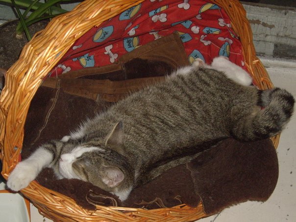 Тогда, 6-ти месяцев отроду, маленькая была, пугалась всего. Теперь то уже большая хозяйка в доме. А дома всё удивитльно получшало с появлением этого хранителя очага. Тася тоже является ценителем платков. Если на вешалке низко повесишь шаль, то бахрому лапами ловить начинает, а уж если вдруг шаль на стуле или диване оставлена, тут сразу придет ценитель и сверху развалиться.