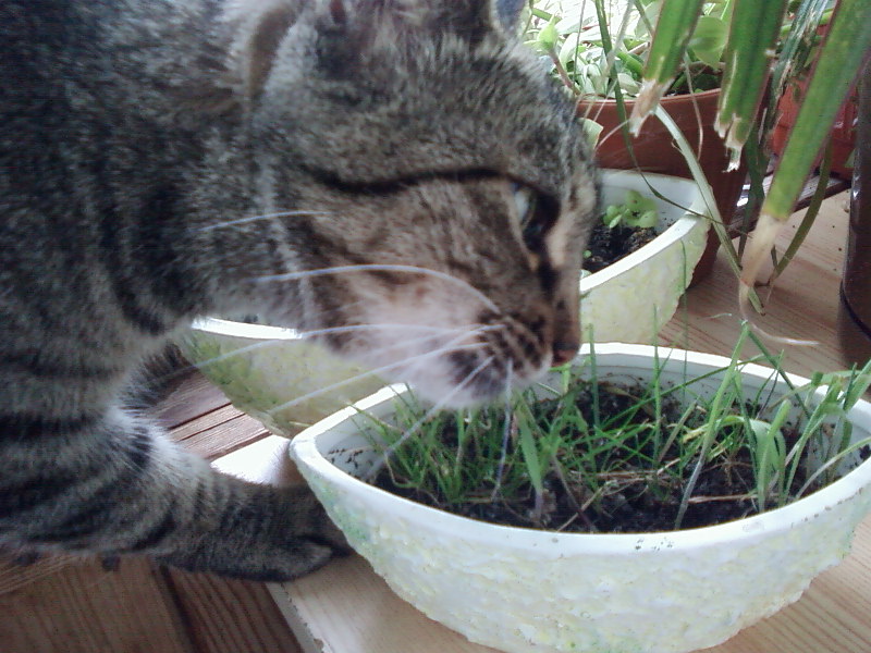 Меня бабушка научила коту сажать овес, он его с удовольствием ел. До этого полностью извел домашние традесканции и аспарагус. А вот возня в горшках - это не страсть к поеданию растений, это что-то другое. Недавно сотрудница жаловалась на подобную ситуацию, кот повадился писать в один и тот же горшок, а после того, как хозяйка пересадила цветок и не стала пускать кота в ту комнату, он пометил ей всю кухню, после этого пробрался-таки в заветную комнату и свалил свежепересаженное растение на пол. Видимо, опять пытался там рыться. У Герленчика что-то связанное с местью хозяевам, так мне кажется. Не стали со мной ночью играть - нате вам!