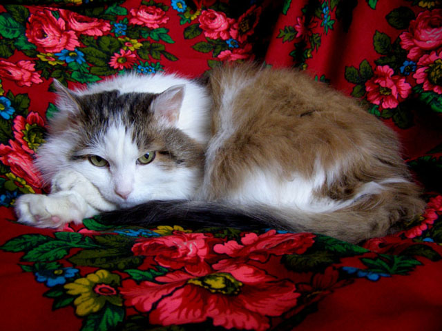 А это для компании наших зверей мой старый сибирский кот. На Табачных листьях...