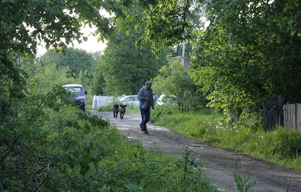 Натик, надо же, кабаны даже в деревню вошли, не боятся.