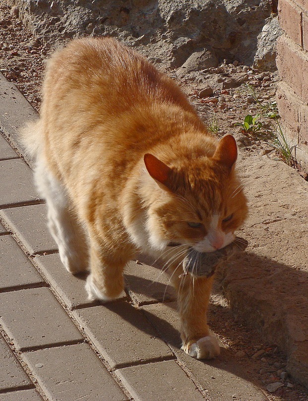 Не могу не поделиться! Зверь не мой. Мы с ним встретились в Новгородском кремле. При съёмке ни одно животное не пострадало! Мышь была выплюнута и оказалась жива-здорова и весьма проворна! А кот терпеливо ждал, когда она вернётся....