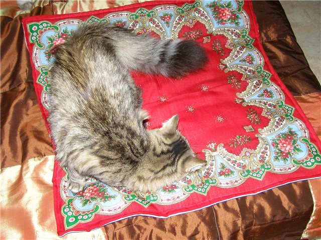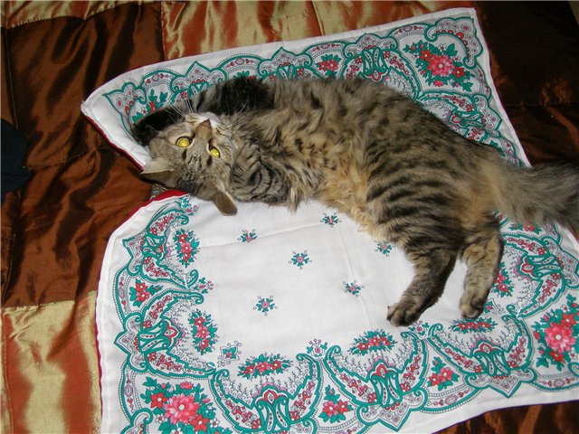 Платки любит (лежать на них). Так что кот наш, шалеман.