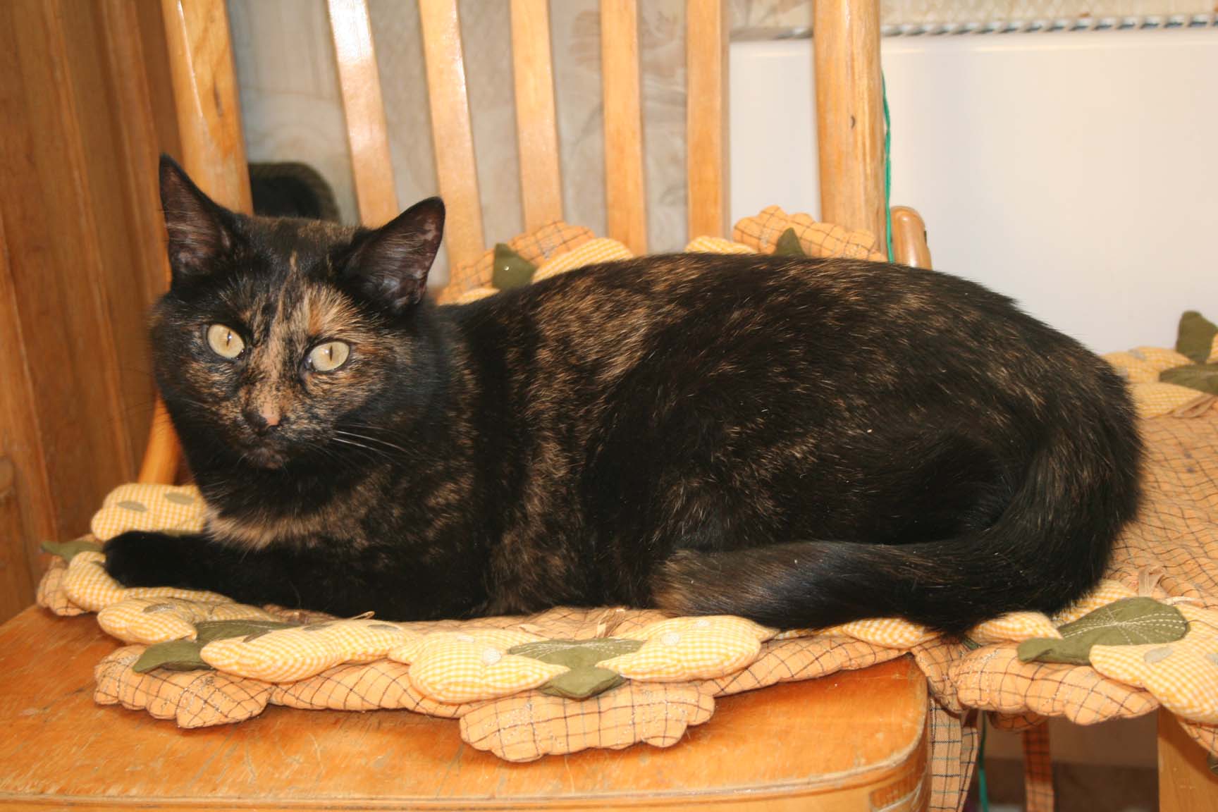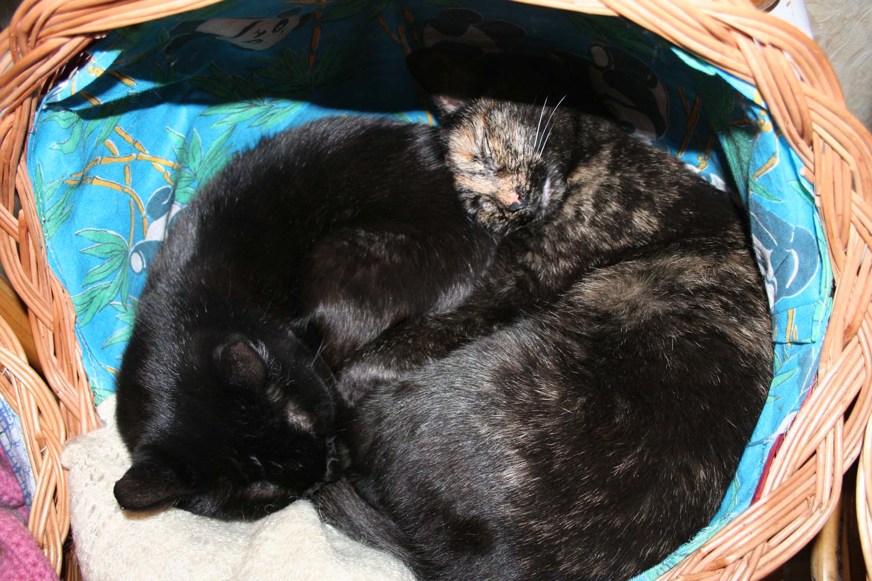 В корзине она со своей приёмной мамой. Масе уже 4 года, но к воспитавшей её кошке Секхмет она очень привязана. Любовь взаимна.