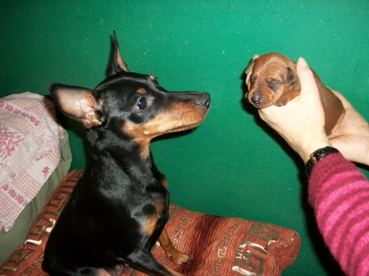 Какой пупсик-пинчер! И мамочка его такая тревожная! Здоровья и хороших хозяев собачатам!