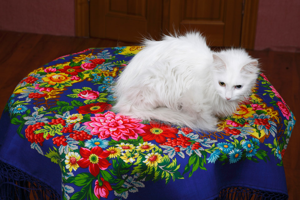 А на втором фото - одна из моих трёх котеек, жирная, прожорливая, глупая и вредная Плюша. Но я всё равно её люблю. Тут она прикрыта моим "Лучезарным".