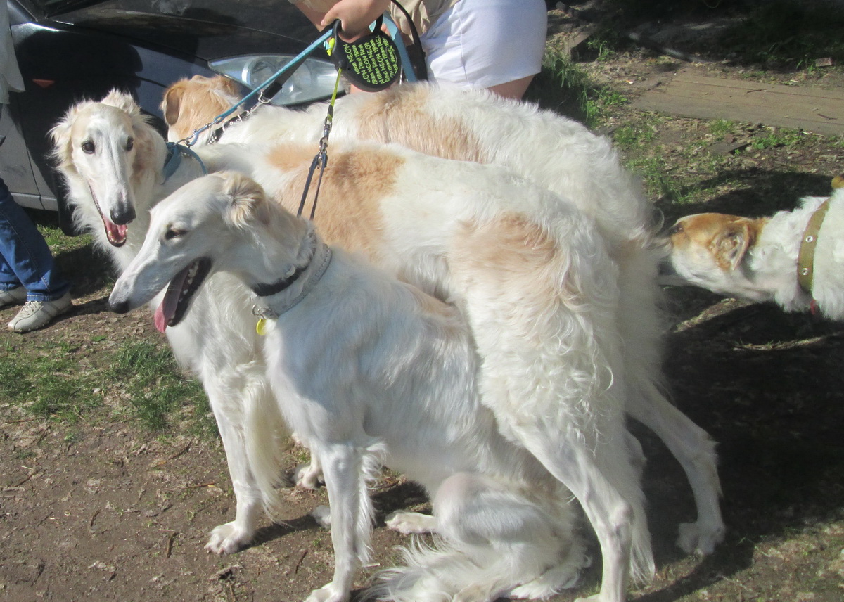 Леда сегодня тоже ванну принимала. Утром её с головы до хвоста обмусолил и извалял в песке её приятель лабродор, а завтра на две выставки. Хорошо, что жарко, после ванны сразу на улицу, не надо с феном возится, ветерок прекрасно укладочку делает