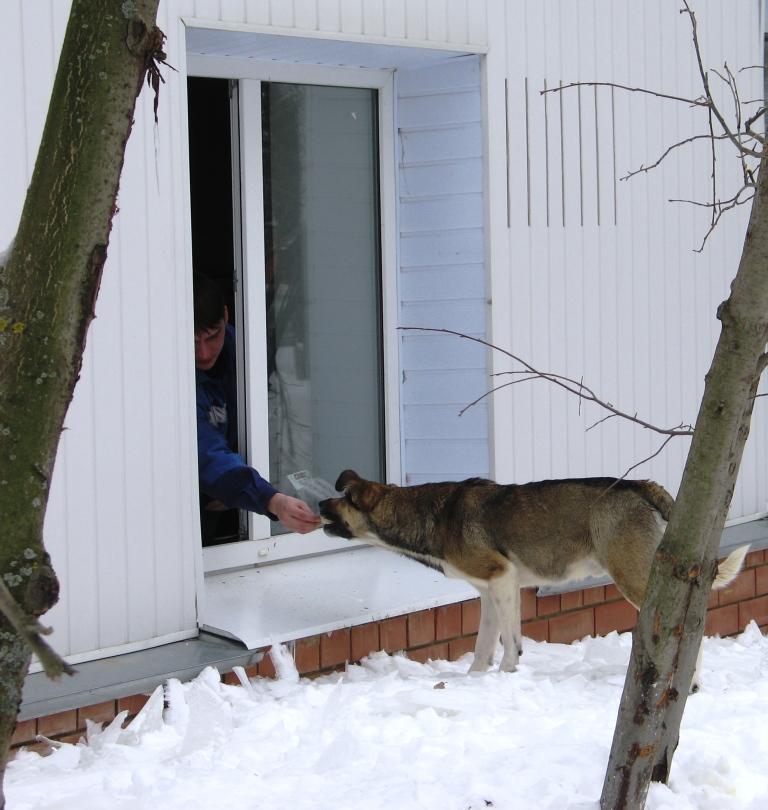 Летом собачки бегают ПОД окнами. А сейчас им стало гораздо удобне выпрашивать угощение.