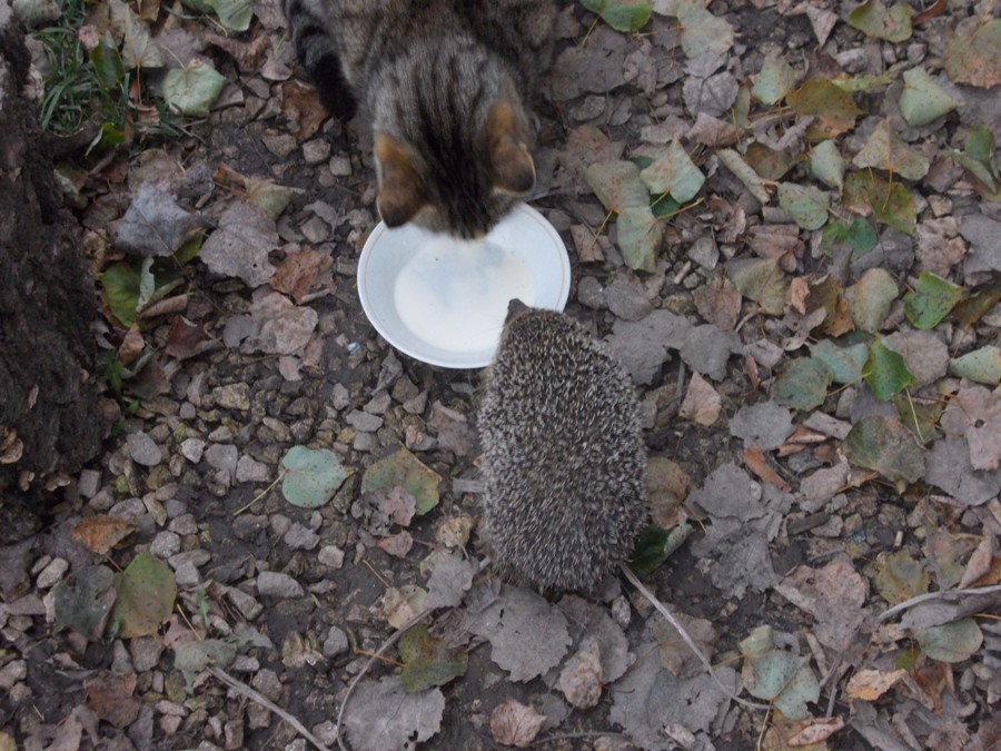спасибо за фото,доброжелательная какая кисюня,ежик несколько хитроватый и храбрый!