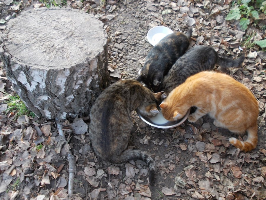Иногда Кайзер резко останавливает завтрак, один разок лизнув ;) . Позже все снова подтягиваются... никто его не боится-то особенно.