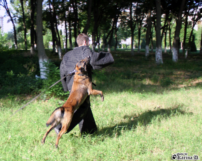 Спасибо )) Мы занимаемся; к сожалению, тут нет хороших доступных площадок, поэтому мы купили себе костюм с родины Джагера, обучаем фигуранта, и учимся сами. Фигурант у нас смелый парень, и терпеливый - собака и сквозь костюм делает больно.