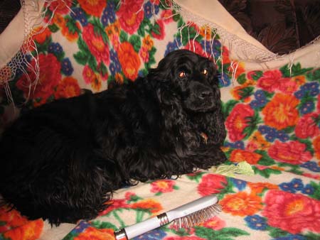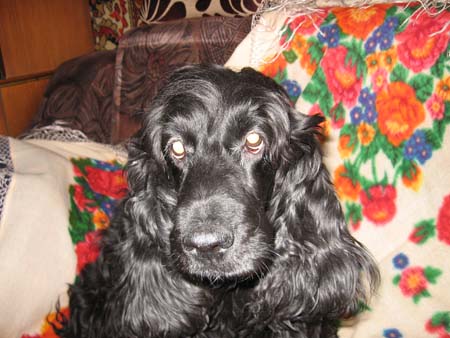 Помещаю фото "моей радости". Коккер-спаниель 9 лет, девочка, зовут Чудо Чой-Чой Анни, по-домашнему просто Анюта. Очень боится фотографироваться. Здесь она специально позирует