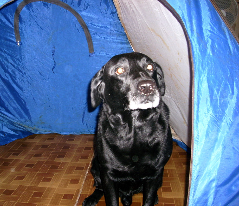 Немножко про нашего "гуталинчика". Муж - заядлый рыбак собирается на зимнюю рыбалку. Проверяет снасти, развернул в комнате палатку - только отвлекся, Ричик уже в ней. В глазах надежда - а меня с собой возьмешь? Я уже готов. Не взял. Уехал рыбачить. Второй день в коридоре такая картина и грустный взгляд - ждет хозяина.