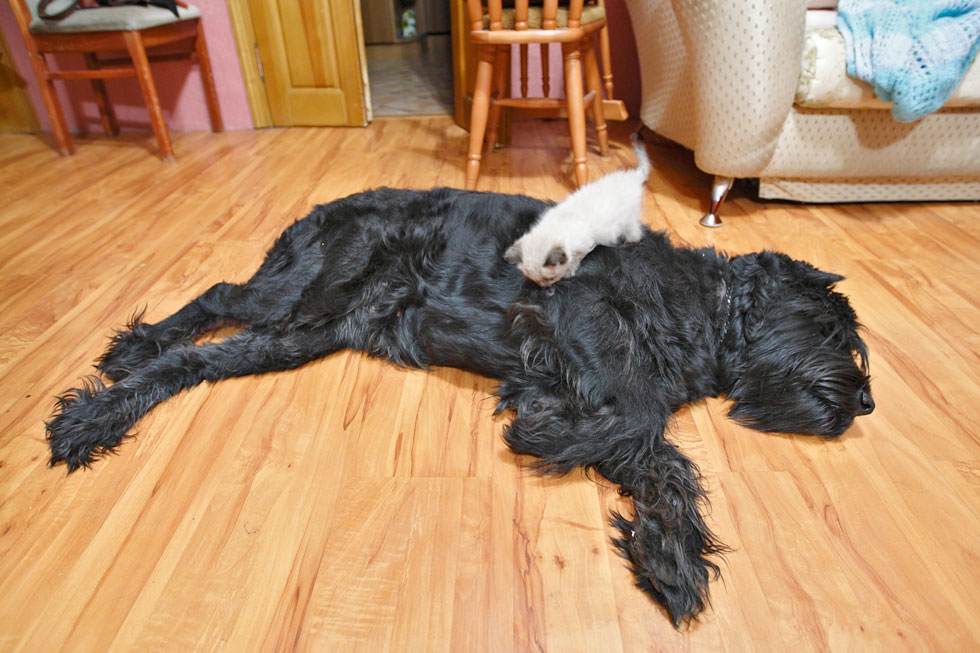 Котейки тоже очаровашки! :: С каждым днем будут становиться все краше!А ризен мальчик или девочка? Всегда так трогательно, когда крупные песы нянькаются с котятками. :lol: