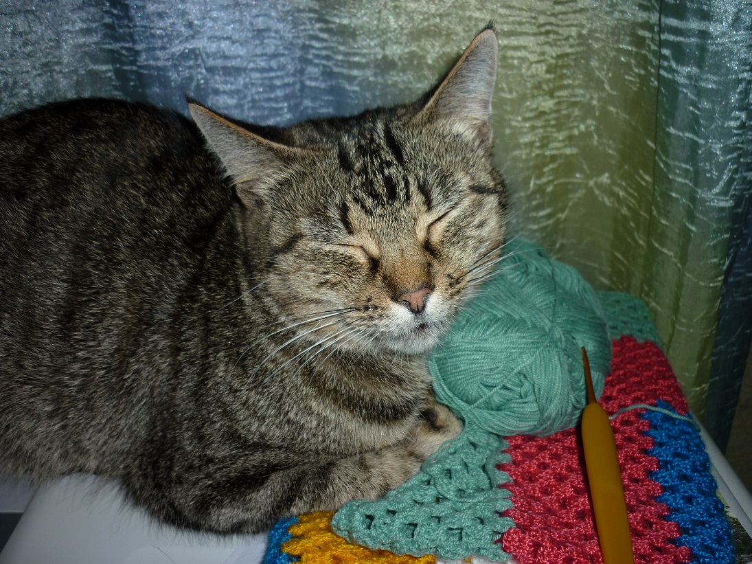 syringa, может быть, хочется, только он у нас очень редко спит на чем-то мягком. ни на диваны, ни не кресла не залазит, ложится на пол или на подоконник. Может, если связать, то будет на нем спать? Попробую. Еще решила ему мохеровую мышку связать...