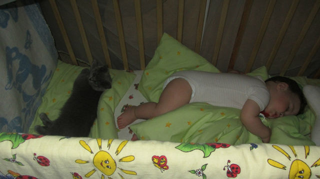 да..кошки-забавные существа) выложу фотку из одноклассников. Моя знакомая купила себе котенка...главное-кто на подушке :lol: