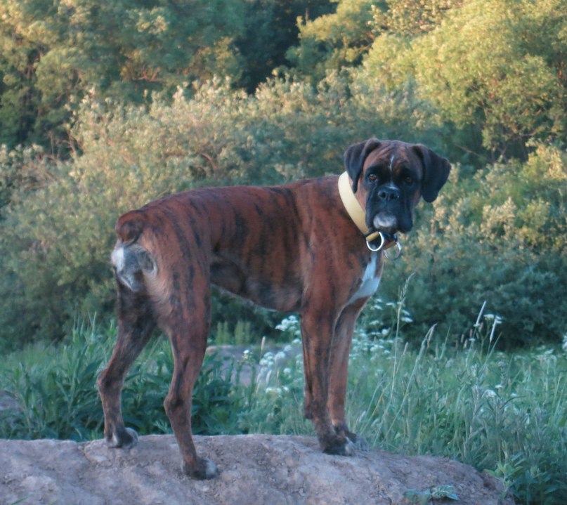 Здравствуйте, мы к вам, знакомиться -Тильда, возраст год и девять месяцев, немецкий боксер, урожденная москвичка ( на тот момент в питерских питомниках не оказалось тигровых с минимумом белого, щенков-девочек , и в возрасте 1,5 месяцев Тильда прибыла из столицы на ПМЖ в Петербург). Размером она была чуть больше пульта от телевизора, наш не очень крупный (но наглый и рыжий) кот казался рядом с ней гигантом, сразу стало веселее )))