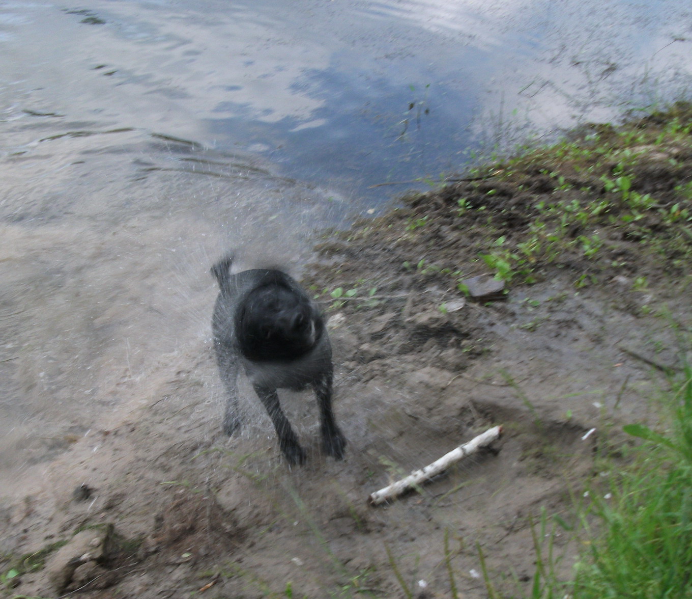Моя красотка тоже водоплавающая, только не ныряет как лабрадорушки. А у брата палевая лабрадорица Стеша, так та как воду видит, летит туда и попробуй потом ее оттуда вытяни