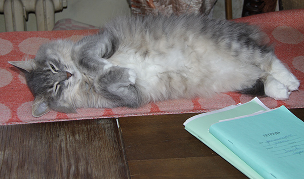 Необыкновенного очарования кошка, умилительная и прекрасная в своем сибирском величии. А любимая поза сна показывает безграничное доверие хозяйке и безграничнейшую же любовь. Почтительно целуюем ее с Вашей тезкой, дочкой Наташей, в сладкий носик. Моя Лилиша сонно шлет привет.