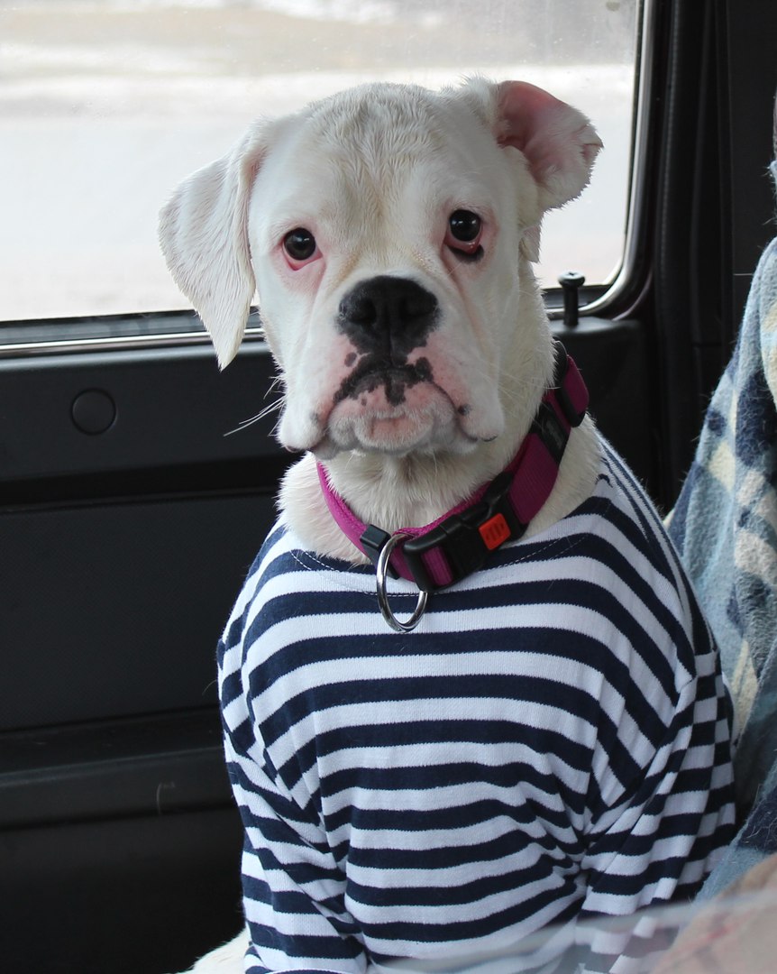 Софира, Murzavio - спасибо )) Помёт был на букву "К", Марфуша- это уже домашнее имя ( по паспорту Клэр). Хозяин Марфушки увлекается рыбалкой, поэтому в машине нашлась тельняшка - так они и поехали домой после прогулки - на переднем сиденье восседала мокрая Марфа в полосочку ))