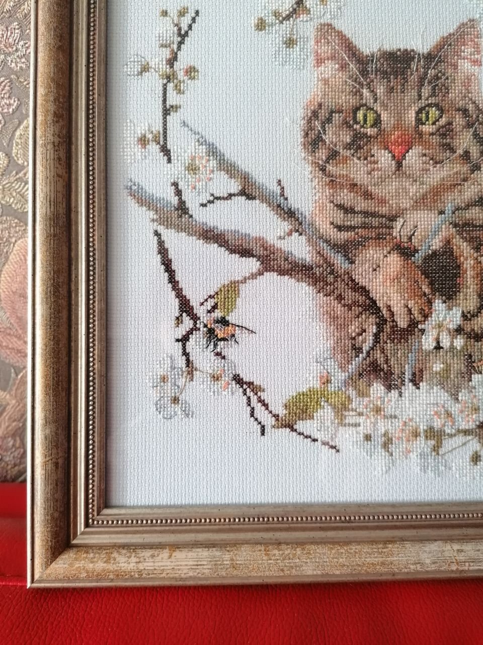 Галlина , решено , будет рамка ) Тем более для внука вышивала , он тоже захотел картину ! Думаю про оранжевый цвет , в тон носа кота U^U