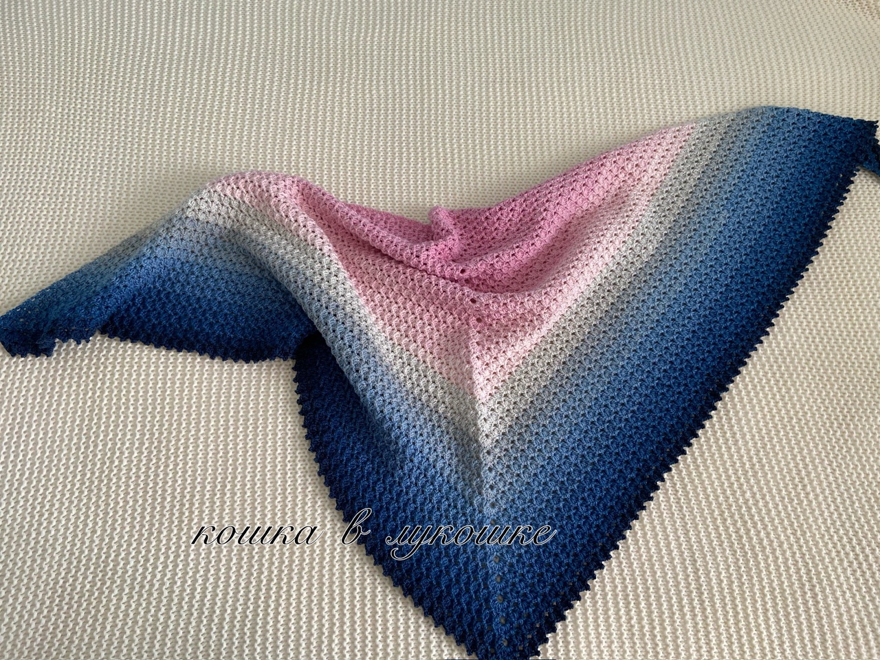 А шапочка, в свою очередь, вдохновила на ажурную шаль-бактус градиент (крючок 3.5)![]()