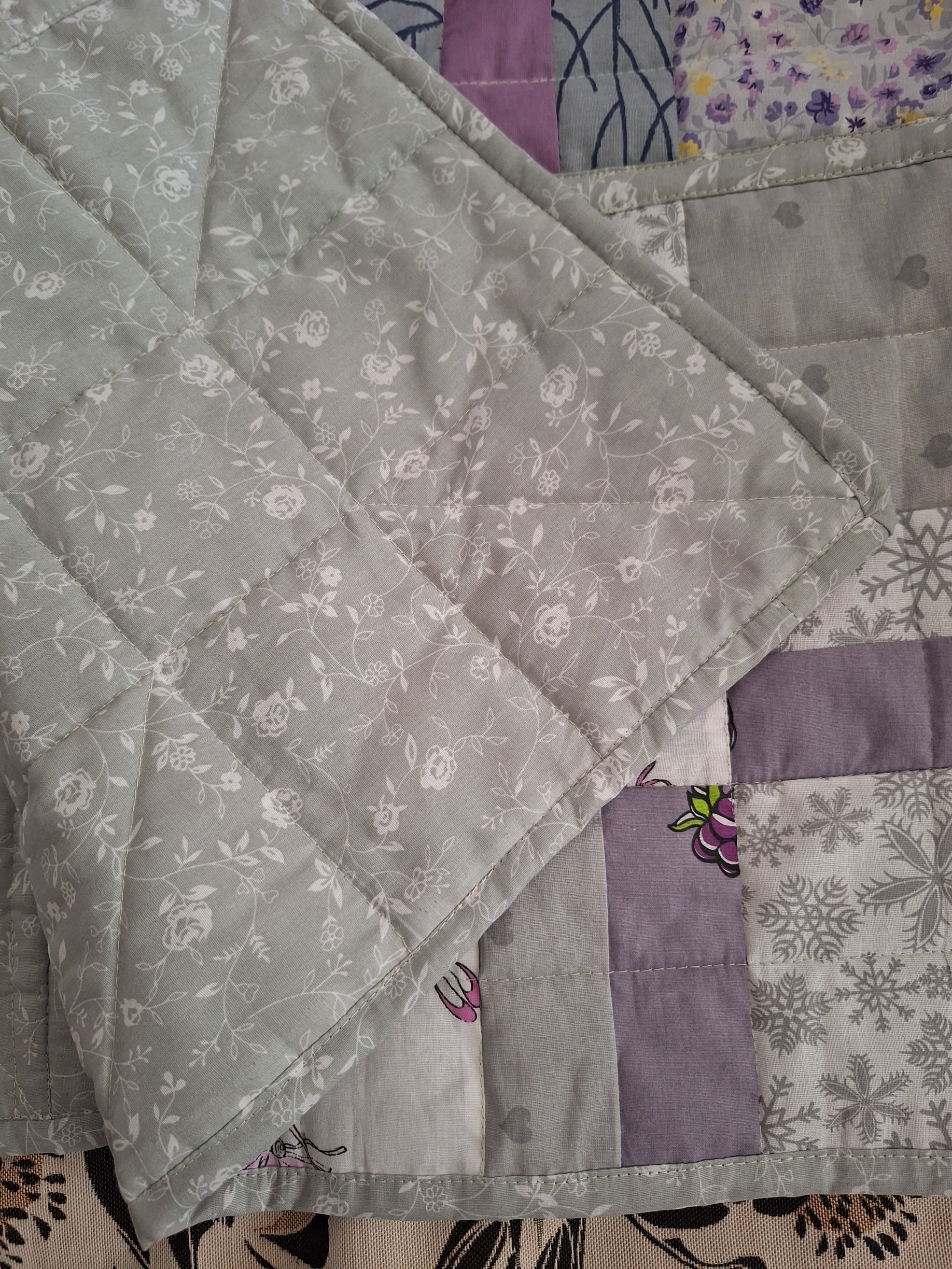 Наконец "домучила" лоскутное одеяло)) ух, сколько раз переделывала, подбирая сочетания расцветок и .совмещение швов.