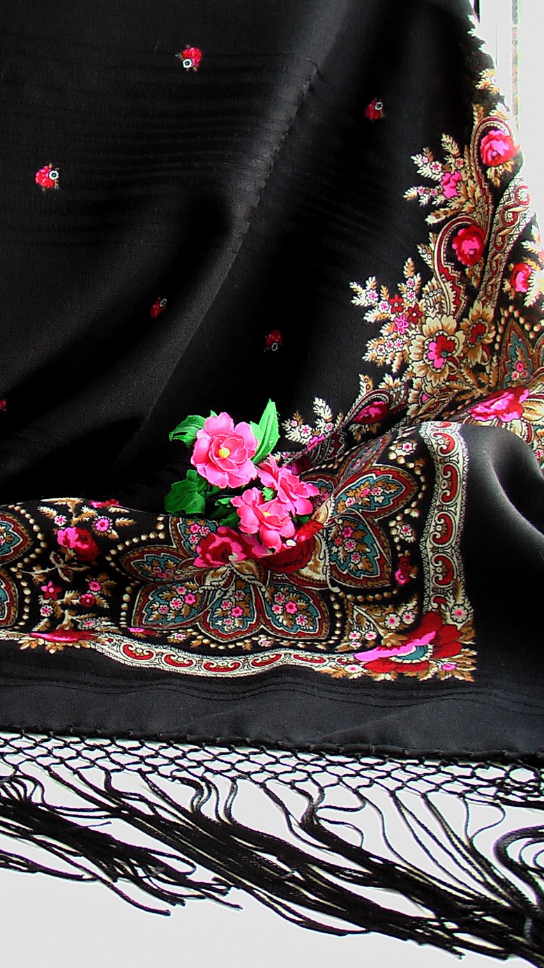 Закончила бахрому вязать на Розе востока, теперь чернопольной. Искусственные розы - это работа Полины.