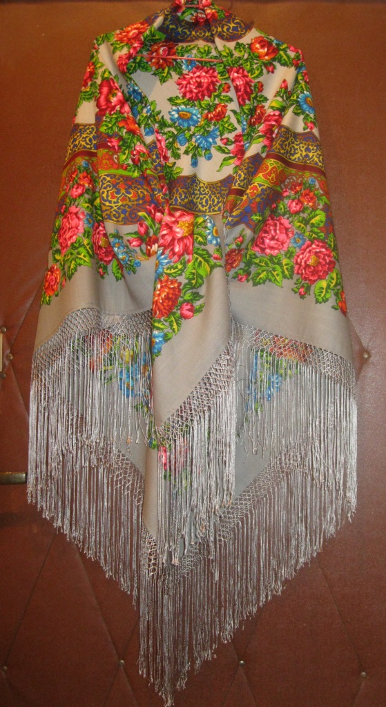 Доброго времени суток всем мастерицам! Покажу и я свою Чеканку с только что сделанной бахромой. Всё бы ничего, делала бы я эту бахрому спокойно и неторопясь, но всё время давлело надо мной, что в фильме про Мануфактуру бахромщица показывает как она делает бахрому клетками за 2 часа... Так вот мне, вязальщице крючком и спицами со стажем, едва-едва хватило терпения на создание бахромы. Но на очереди другие уплотнёнки - Лето в Павлове-17, Белая птица, Медальоны сливочные... Только проблема - где взять вискозную пряжу вцвет? Для Чеканки после долгих поисков нашла нитки точно совпадающие по цвету с шалью, 100% вискоза, но чуть тоньше, чем на уплотнёнках от ППМ, для платков без клеток эта пряжа подошла бы идеально. Продевала нитку в платок крючком, а дальше вспоминала свои занятия на курсах макраме - как зафиксировать шаль, и как фиксировать каждый узел, чтоб были клетки одинакового размера...