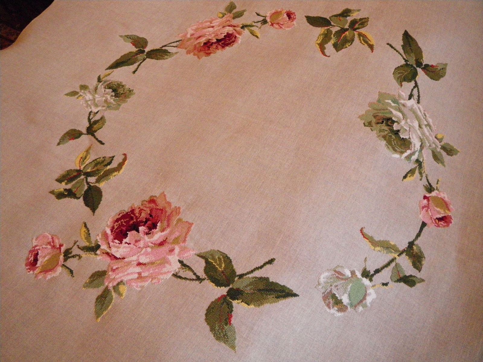 И на последок: скатерть на льне от DMC – работать над ней было просто наслаждение, хоть это и был первый опыт вышивания на льне.