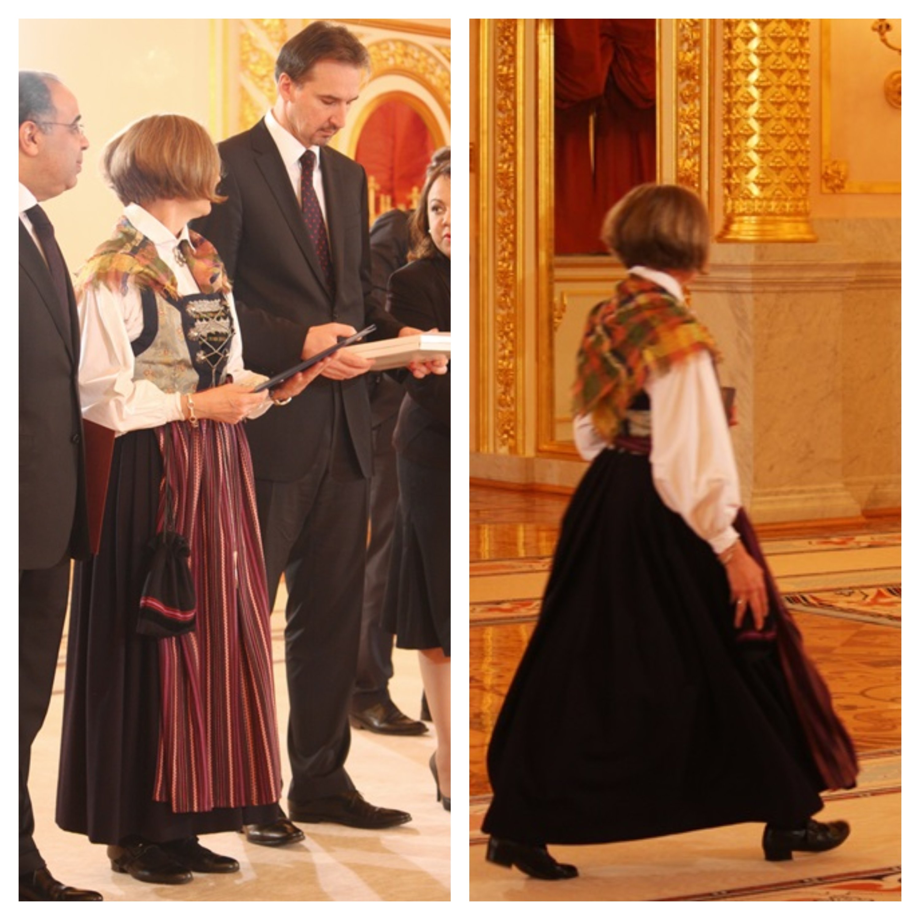 Несу картинку, которая иллюстрирует сразу 2 мысли: национальное - это протокольное, и да, ношение национального костюма - это политический и дипломатический жест тоже.