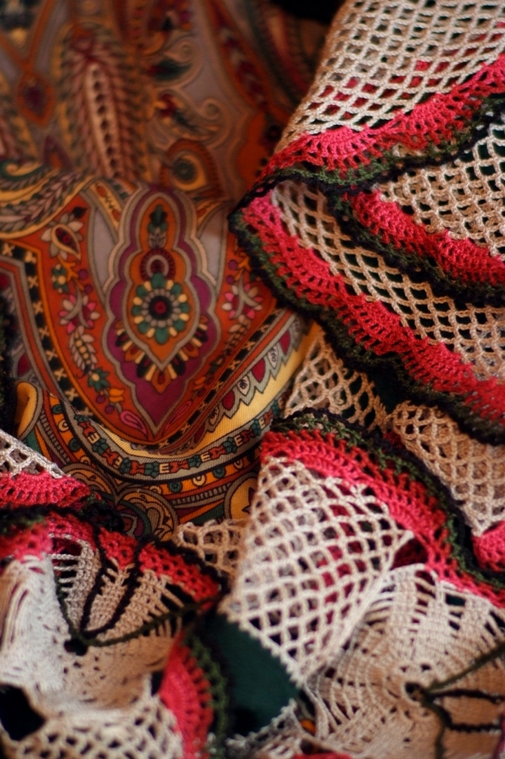 А Вы увидели в узоре журавлика? Немного жалею, что не взяла вовремя этот веселый платочек, но желто-оранжевый Караван есть, думаю, зачем еще? Неужели "выздоравливаю"?