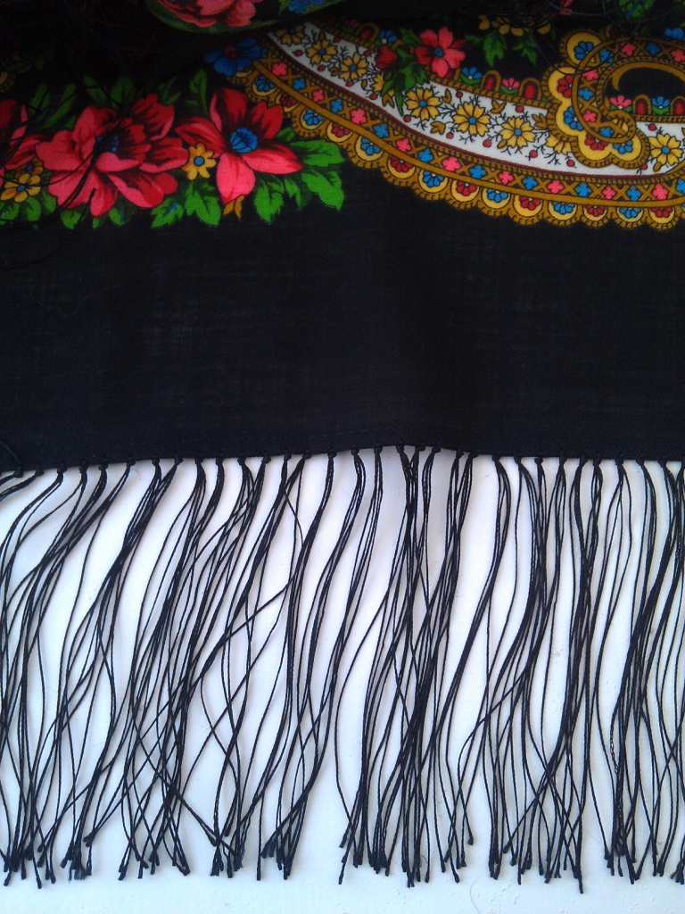 4. Платок Русский танец 18. Наконец то его дождалась. Сняла шерстяную бахрому и сделала вискозу. Ну очень красиво стало.