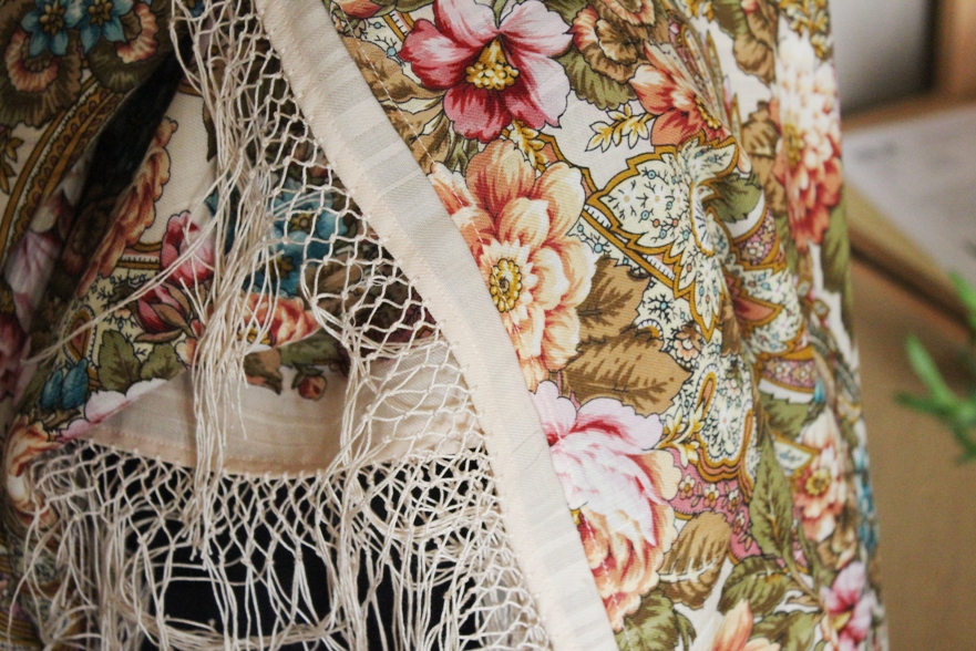 С нитками вискозными в местном магазине проблема большая, поэтому сделала бахрому из хлопка, идеально подошел цвет, да и по фактуре мне понравилось как получилось. Бахрома заняла три вечера. Последние ряды шли уже очень быстро