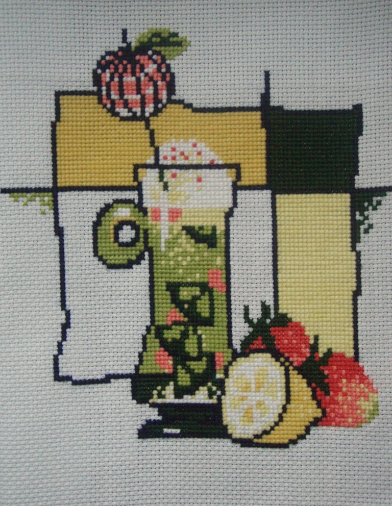 - пришлось найти применение вышивке - пристроить в виде подушки...Что-то у меня не получилось "выложить" всю серию "коктейльную" - а там есть ещё "Малиновый десерт", "Яблочное вино", "Глинтвейн","Мороженое". Чуть позже размещу. "Риолис" эту серию сделал, похоже специально для поднятия настроения вышивальщиц тёмной, мрачной, без солнечного света зимой. Заметила, что вышивание на тёмном фоне не способствует радостному состоянию души, поэтому оставшихся две картинки "по перуанским мотивам" на чёрном фоне пока лежат, ждут своего часа. А к Алле вопрос - мне очень понравилась "Розовая роза" - скажите, что за схема, чья, откуда, и какая - чёрно-белая символьная или цветная? Ещё...на моих фото вышивки кое-где "кривовато" выглядят, то "живьём они ровные, в рамках"...как всегда - место, откуда растут руки фотографа...неизвестно!!!