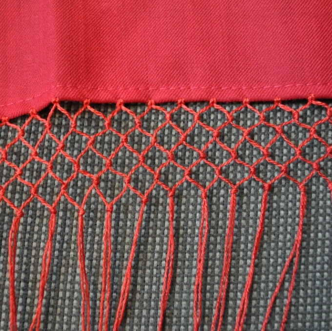olgaballet, нет, я не стала крючком даже пробовать, посмотрела, как сделана бахрома на платках, попробовала сделать так же. Узелок на двух нитках, в следующем ряду сдвиг на 1 ниточку. Вообще сначала задумала узелок макраме вязать, да испугалась, что не сдюжу. Теперь вот думаю в следующий раз попробовать. Надо только побольше про макраме почитать. В молодости я что-то делала, да не освоила полностью.