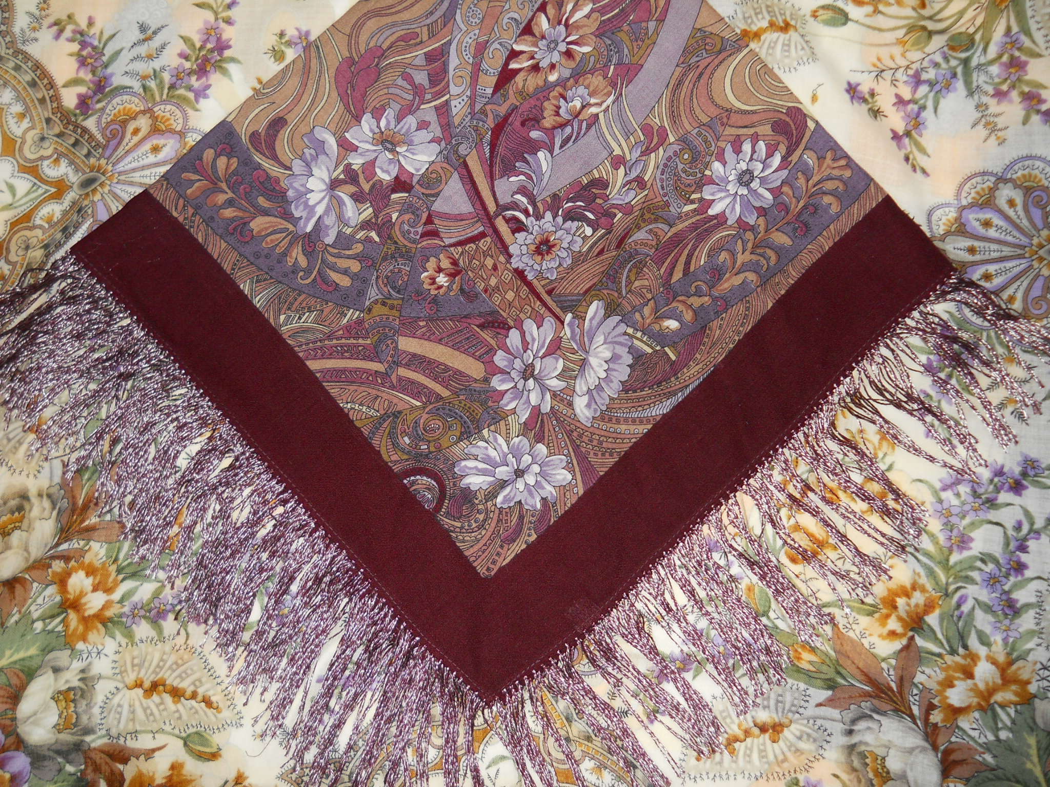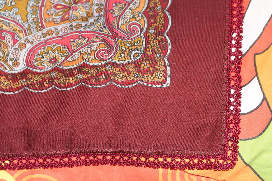 Обвязка гармонирует с бордовым кантом (или как это назвать? имею в виду тоненькую полосочку, которая завершает узорный край) на платке.