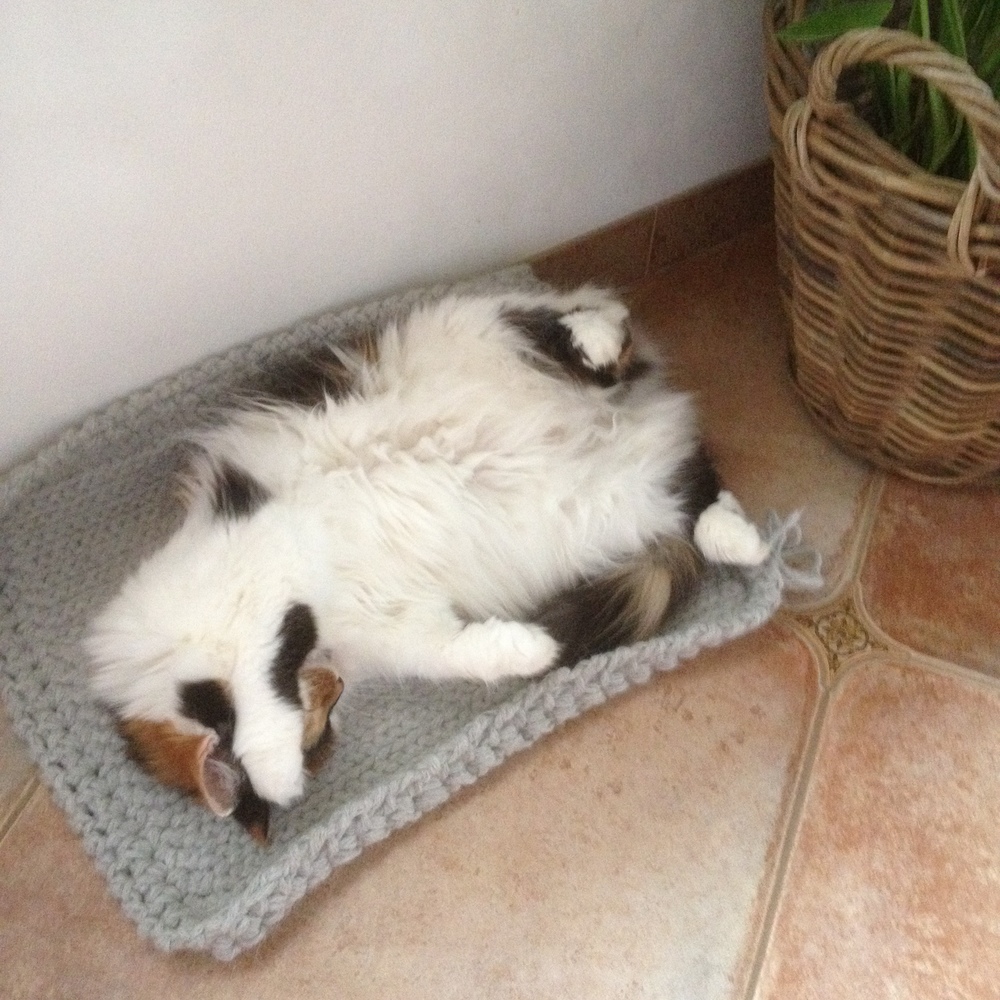 Коврик из шерсти. Связан крючком одними соединительными петлями и оформлен "рачьим шагом"