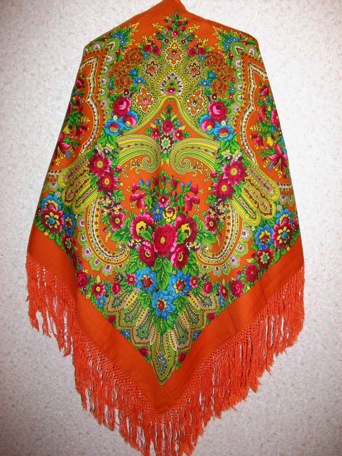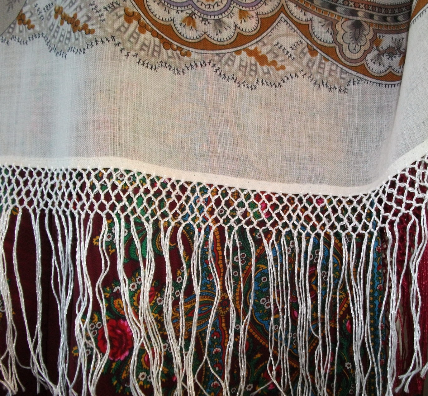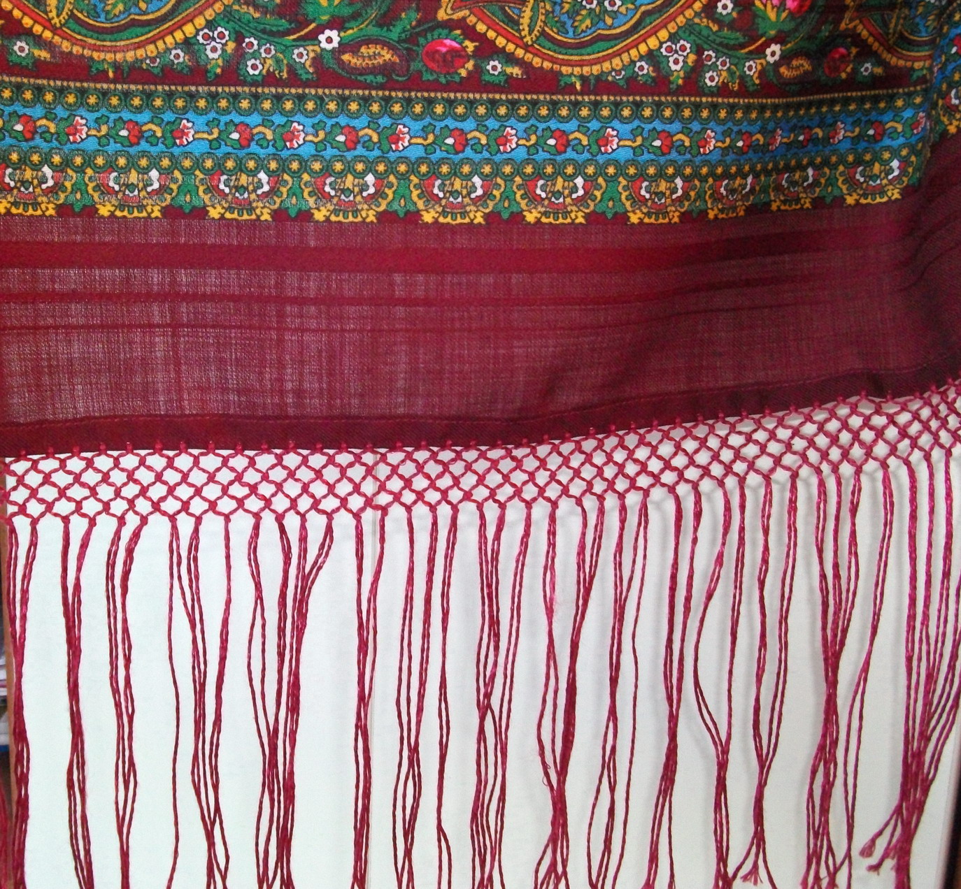 Показываю саму бахрому и общий вид платка (шали), что бы было видно, как изменился он при наличии бахромы