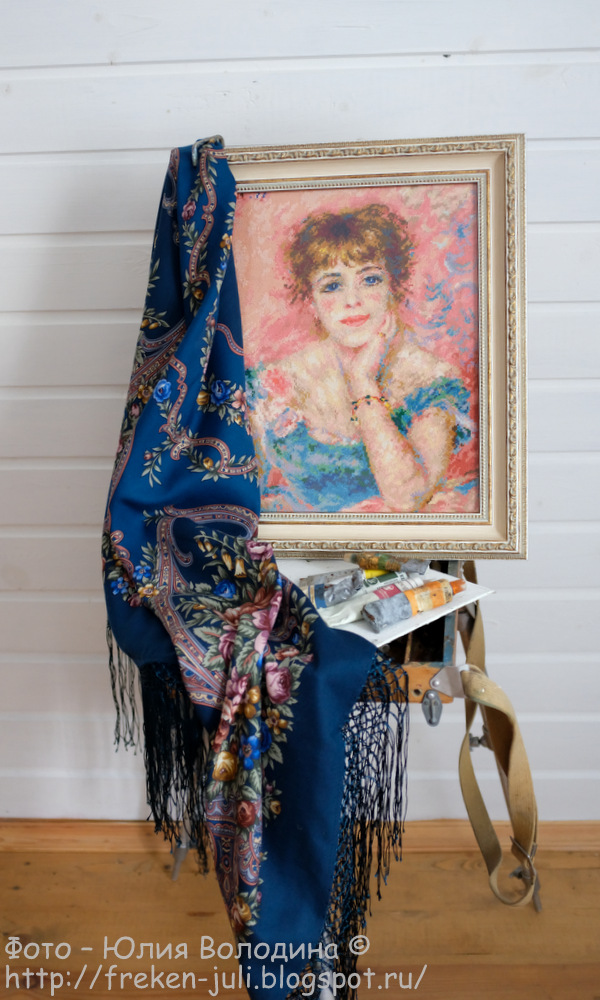 Оформляла я, ты права под конкретную комнату на даче и так, что две работы гармонично смотрелись в паре рядом. Портрет Жанны Самари у меня в светлой раме.