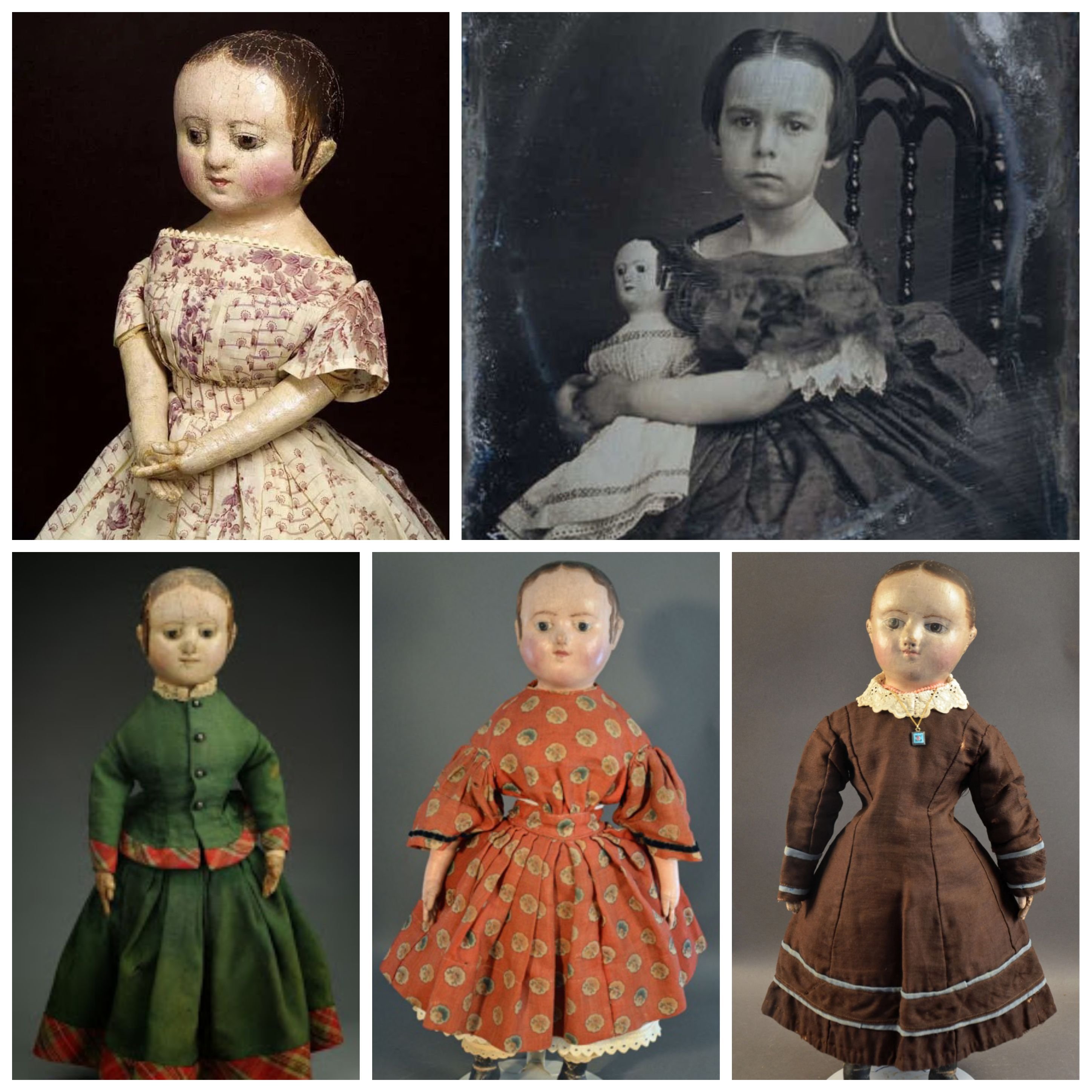 В коллаже - оригинальные куклы Изанны, дожившие до наших дней, и портрет девочки из 19 века.
