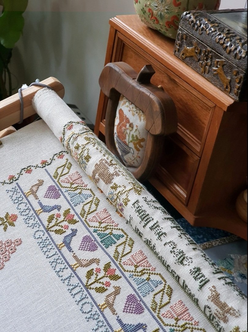 Сфотографировать толком не смогла--все бликует. Белые пятна и просветы на вышивке--это блики. Ну уж, как есть...