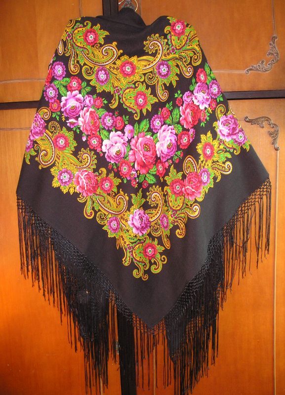 не доросли. У нас-то и магазина ППМ нет, нашла только в церковной лавке уголок, много ль туда народу зайдет? Да и мода у нас приближенная к загранице.....В моем городке с населением около 12 тыс. чел. и любителей ППП -то и нет.Если и встретится кто случайно, так прячут платочек под одежду.Только я ношу вот так феерично, платок наверх пальто, чтобы была видна ВСЯ красота платка. А наш, "привыкший к серости" народ, представляете как воспринимает такую яркость
