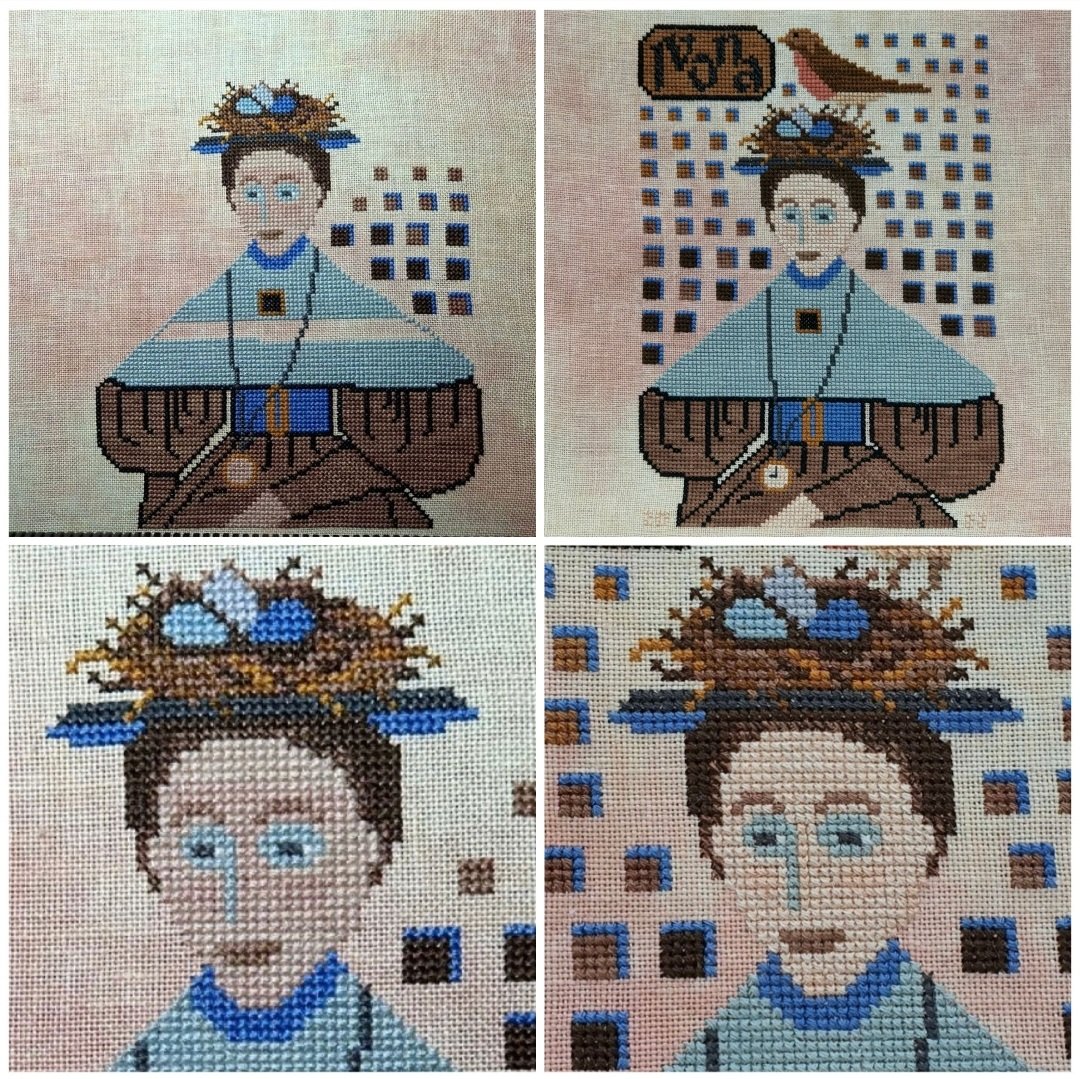 В оригинале там 1836 ( год), я заменила на нужное мне посвящение - "Ivona". Все нитки - подбор из моих запасов (хлопок dmc и ручного окрашивания, бленды) Основа - австрийский лён 30ct, окрашенный вручную. Лицо и кисть руки сначала вышила более тёмным оттенком, но этот "загар" мне совсем не понравился, слишком экзотично)) даже для такого сюжета. Перешила. Самые глазастые смогут разглядеть вышитые цифры 2022