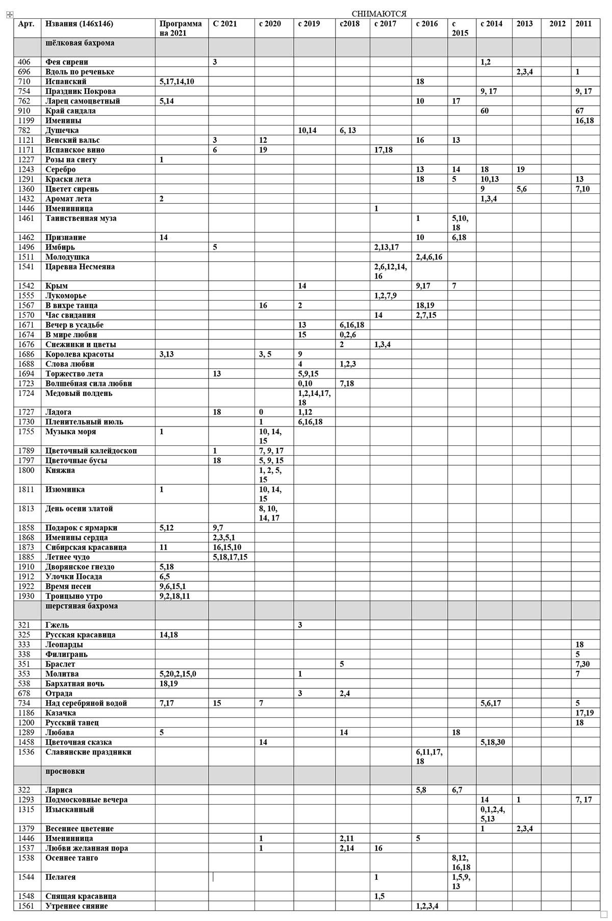 А я ничуть не удивлена. По мне так ни один рисунок последних лет не в состоянии конкурировать со старыми. И продажи, видимо, это подтвердили.manynia писал(а): ↑10 фев 2021, 10:20Интересно, что в остающихся на этот год многоцветках самым новым рисунком будет Любовь земная 6. Точно не помню, но этой шальке года 3-4 примерно.Это что, за это время не появилось в этом разделе ничего, что смогло бы хоть как-то конкурировать со старыми рисунками?